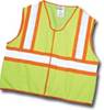 ANSI Class 2 Deluxe DOT Mesh · 3.4 oz durable, extra breathable 100% knit polyester mesh high visibility lime material · Solid knit side panels for durability · Inside left breast pocket with a 2 tiered pencil pocket · Matching high visibility trim all around · 4 high visibility orange fabric with double 1 silver reflective stripes · Zipper closure · Complies with many state DOT standards · Stock sizes: L-4XL, other sizes made to order |