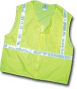 ANSI Class 1 Solid Lime Vest · 3.65 oz breathable, extra durable 100% knit polyester high visibility lime material · Matching high visibility trim all around · 1-3/8 high gloss white reflective tape on front and back. · Full velcro front closure · Stock sizes: L-4XL, other sizes made to order |