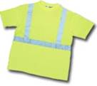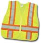 ANSI Class 2 Lime DOT · 3.65 oz breathable, extra durable 100% knit polyester high visibility material · Contrasting high visibility orange trim all around · 4 wide contrasting high visibility orange tape with 2 silver reflective · Full velcro front closure · Complies with many state DOT standards · Stock sizes: L-4XL, other sizes made to order |