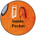ANSI Class 1 Solid Orange Surveyor Vest · 3.65 oz breathable, extra durable 100% knit polyester high visibility material · Contrasting black trim all around · Multiple pockets · 1-3/8 high gloss lime/yellow reflective tape on front and back. · Zipper closure · Stock sizes: L-4XL, other sizes made to order |