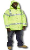 ANSI Class 3 Winter Coat · Heavy insulated high visibility lime mid-length coat · Collapsible hood with drawstrings for added versatility · 2 silver reflective tape on front and back · Reinforced seams for strength and durability |