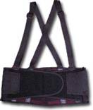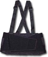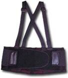 Titan Back Support Belt · Back panel is constructed of breathable spandex material · 8" high back, tapered in front to 4" · Adjustable, 1-1/4" elastic suspenders |