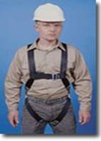 Lightweight Universal Size Harness with 1 back D-ring, mating buckle leg closures. Includes 1 lanyard keeper and work belt loops. 7256 6 ft. shock absorber lanyard attached.