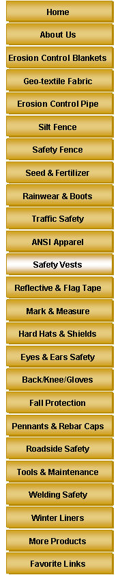 EROSION CONTROL can supply all your Safety Vest needs. Call Mike at 410-861-8302 and ask about Custom Printing your Logo on the vests you choose. |