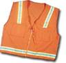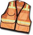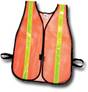 Fitted vest in Lg, XL, XXL has a sewn in elastic tuck in the back instead of open elastic sides for perfect fit and comfort. Available in soft mesh orange and lime, plain or with reflective stripes. |